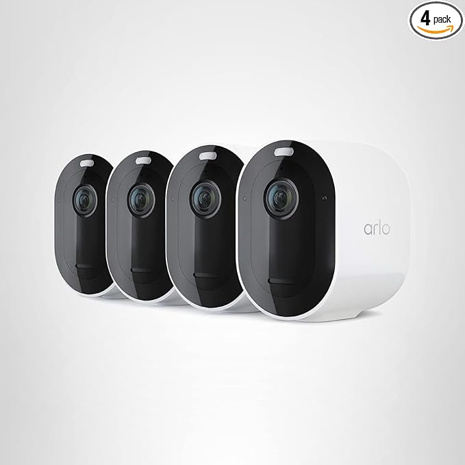 Arlo Pro 5S Spotlight Security Camera 2K HDR | Outdoor | Wireless | Dual-Band Wi-Fi Connects to Strongest Network |12X Zoom, 2-Way Audio, Siren, Color Night Vision,Live Stream(White, 4 Cameras)