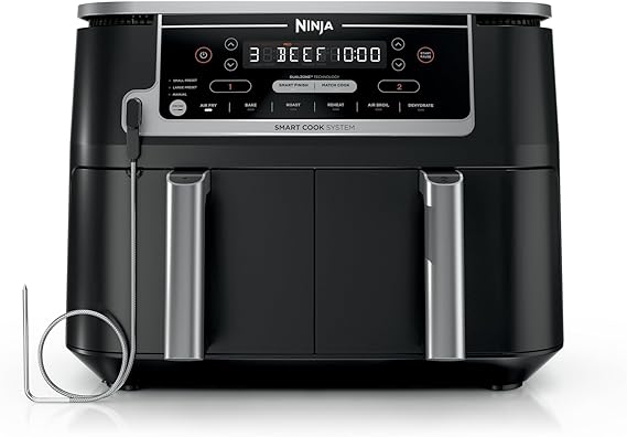 Ninja Foodi 10 QT 6-in-1 DualZone Smart XL Air Fryer, 2 Independent 5QT Baskets, Smart Cook Thermometer, Match Cook, Smart Finish, Air Fry, Roast, Bake, Dehydrate, Reheat, Grey, DZ550